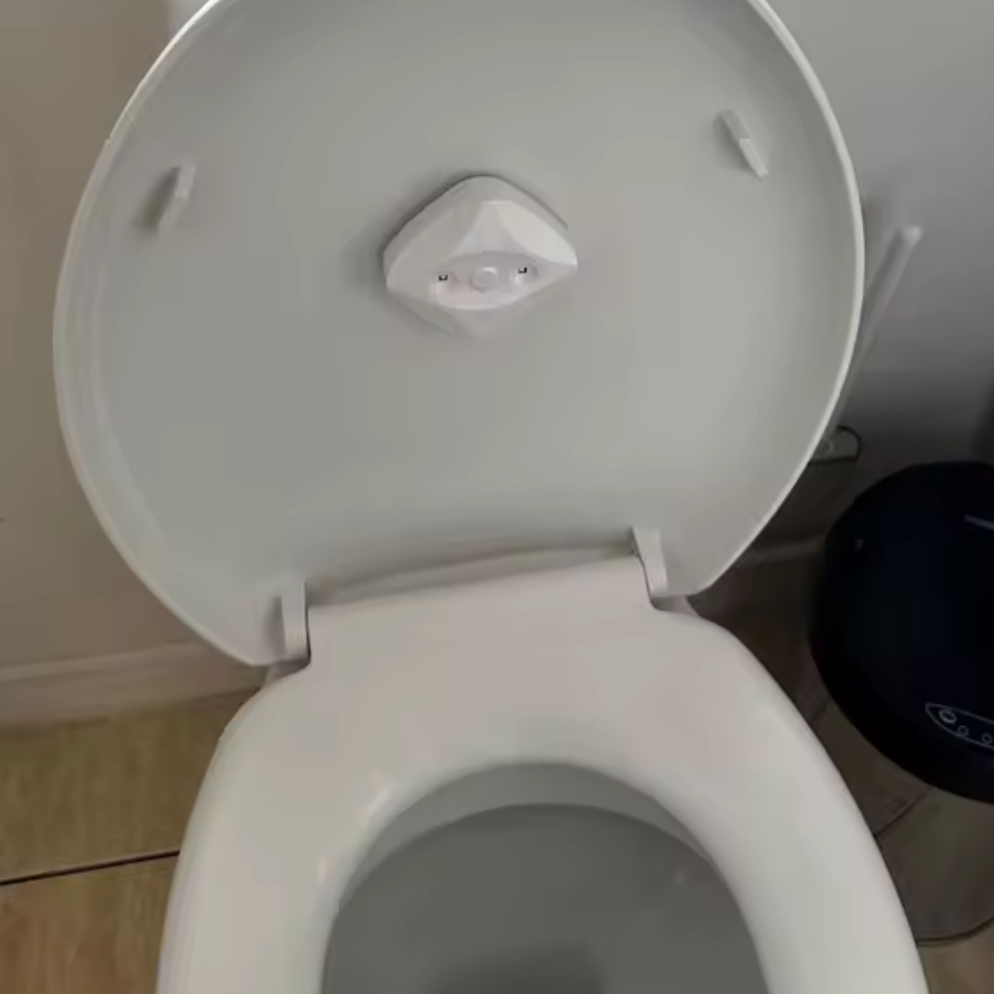 Attach the self-adhesive device under the toilet lid. Takes 10 seconds, fits every toilet.