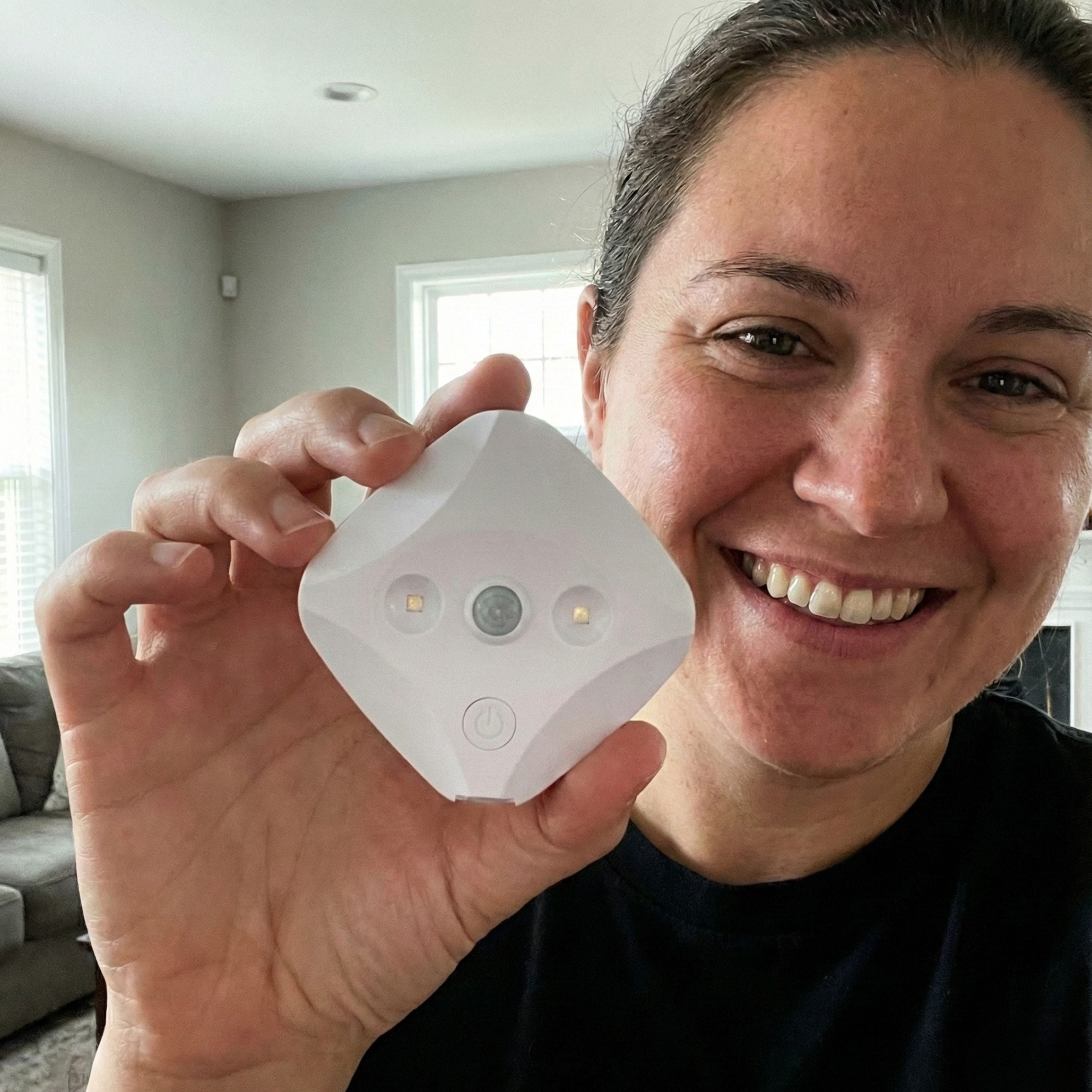 A simple, sleek, lab-certified, modern device that installs in seconds with secure self-adhesive backing.