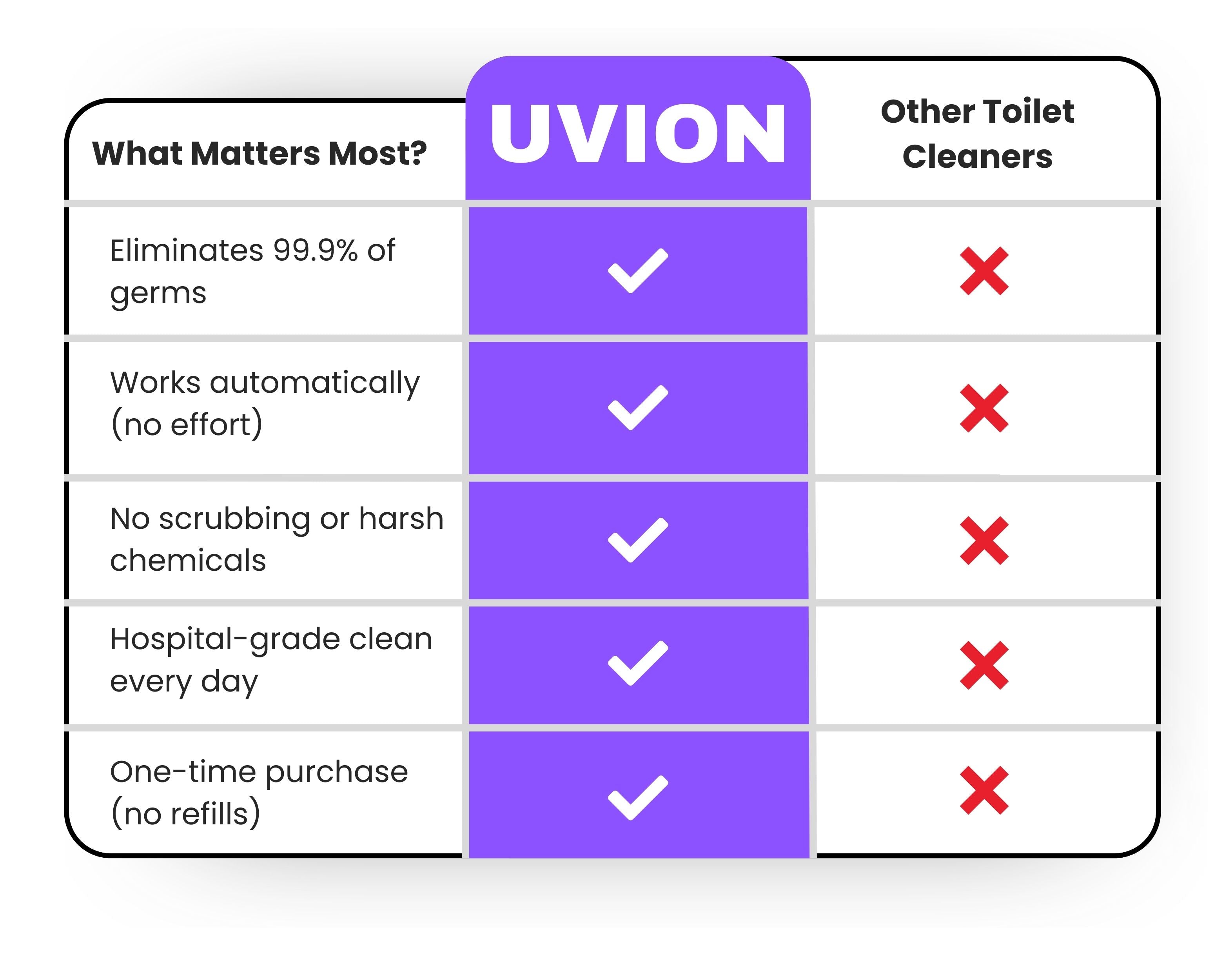PureFlush Pro™ uses hospital-grade UV-C technology to eliminate 99.9% of bacteria, viruses, and mold in seconds, automatically, every time the lid closes.